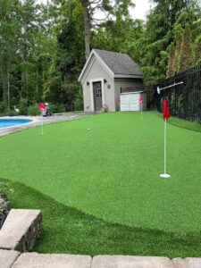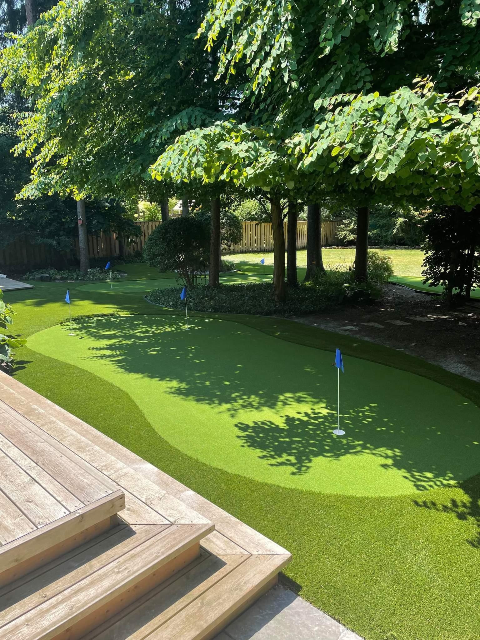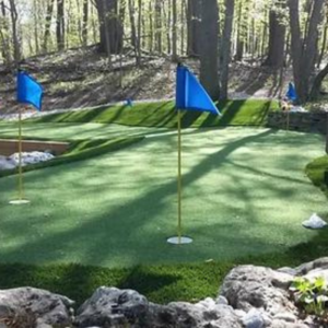The Augusta Turf is best in class . Very tightly wound with a smooth consistent feel where the ball rolls true. The fibers are cut perfectly even to prevent the ball from veering off line which happens quite a bit with other inferior brands. Combined with our tour links indoor golf panels, this turf is ideal for training aids and golf pro shops.